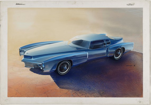 Toronado Proposal, 1968, Roger Hughet, American; gouache and prismacolor on illustration board.