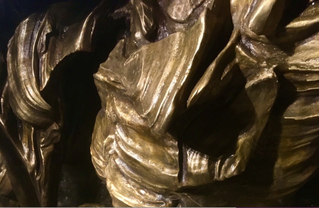 La obra de Cristina Iglesias parte de una idea preciosa, de poderosa fuerza romántica, pero el resultado no llega a la excelencia conceptual del punto de partida, en mi opinión. No es que la realización sea defectuosa en algún aspecto, nada de eso, la pieza se halla perfectamente resuelta y todo encaja como anillo al dedo. La obra de ingeniería, así como la fundición en bronce, son admirables y han supuesto un considerable esfuerzo técnico. Lo que hay es lo que se ha querido hacer, pero la idea inicial posee una pureza que su materialización no alcanza con plenitud.
