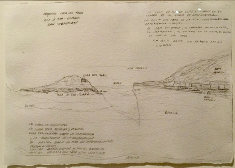 Donde la idea artística queda bien plasmada es en la exposición que, paralelamente, presenta el Museo San Telmo. En sus dibujos preliminares -acuarela, guache, lápiz y carboncillo-, en sus planchas de cobre -serigrafías tratadas con ácido-, en los estudios de agua -técnica mixta-, en los monotipos (Turquoise blue, Seaweed green, Windy blue, Moss green…) -fotograbados y tintas caligráficas- y, por supuesto, en la gran maqueta de bronce se descubre mejor el empuje y la riqueza de un planteamiento que al convertirse en realidad espectacularizante queda varada a pocos metros de llegar a su destino. Aquí, en el museo, sí sentí más emoción que la que me alcanzó en el faro isleño.