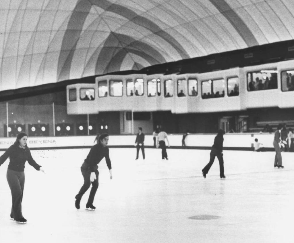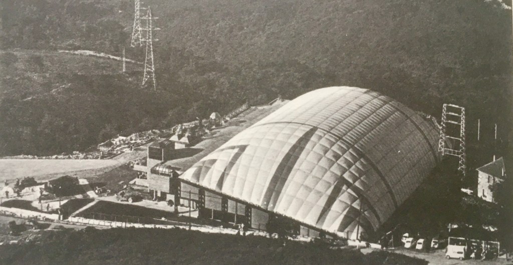 Tras escribir lo anterior he caído en la cuenta de que conocí otro trabajo de Prada Poole: la cobertura de la pista de hielo Nogaro (1972-73), pista proyectada por los arquitecto Rufino y Pedro Basañez en la cumbre del monte Artxanda, próximo a Bilbao. En aquella cobertura se solucionaban los problemas de empuje del viento con el empleo de una red de cables, sistema prácticamente desconocido -utilizado hasta aquel momento sólo en otras dos construcciones en todo el mundo- convirtiendo la membrana en un elemento celular, cuya misión consistía casi únicamente en transmitir los esfuerzos a los cables del borde. Con aquella cubierta se creó un espacio único de 18.000 m2 en el que las sensaciones se multiplicaban en proporción a su considerable tamaño.