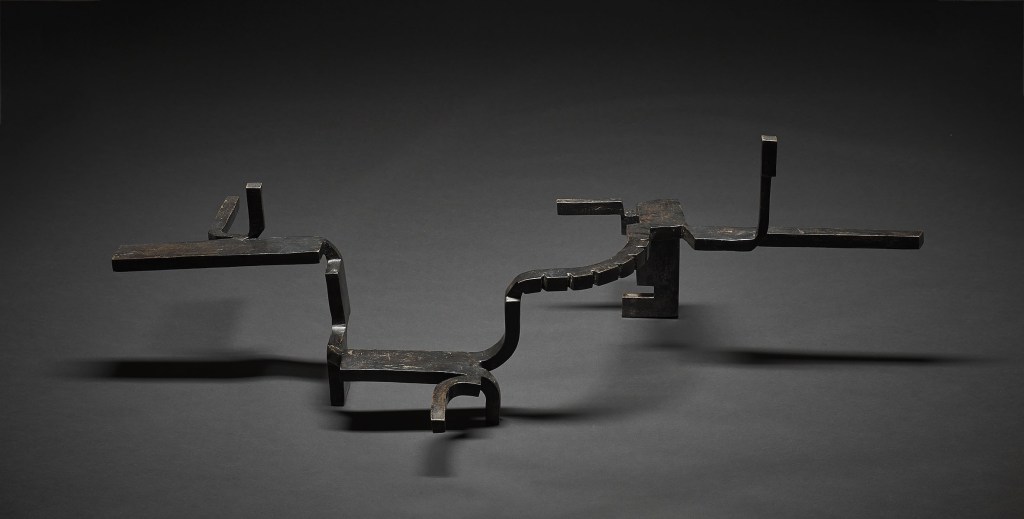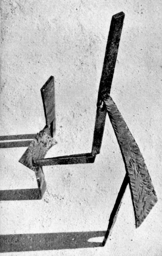 Incluyo a continuación la portada del catálogo publicado por el Ateneo en 1958 y las imágenes de tres esculturas presentadas entonces. Cierro con una preciosa pieza de Chirino propiedad, precisamente, del estudio profesional de Vicente Saavedra y Javier Díaz-Llanos que tuvieron a bien depositar en TEA Tenerife Espacio de las Artes en 2009, una Composición constructivista que, aunque datada por este museo como de 1957-58, pertenece a todas luces a un momento posterior a la exposición del Ateneo, quizás del mismo 1958, pero posterior. En esta escultura Chirino «corta el hierro» para facilitar las curvaturas y torsiones del metal, como venía haciéndolo Chillida desde 1954-55, pero al mismo tiempo también empieza a mostrar una personalidad propia más definida.