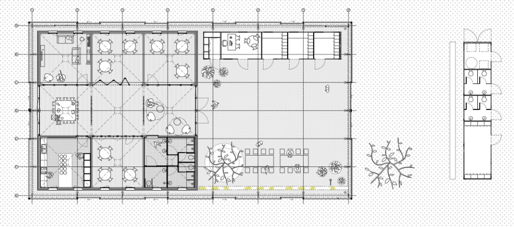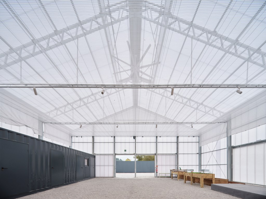 El proyecto plantea un volumen interior para los talleres dentro de un volumen tipo invernadero. Este sistema ofrece varias ventajas para el conjunto, desde un punto de vista espacial, experiencial y de sostenibilidad.