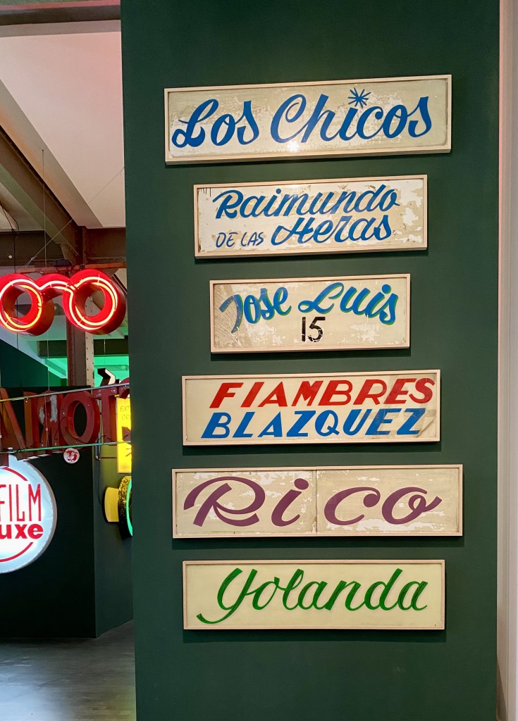 En estos rótulos hay arte gráfico y mucho más: diseño, color, composición, tipografía, luz, diversidad de tamaños…, todos ellos son piezas únicas, rótulos que han sido dibujados teniendo en cuenta el espacio que ocuparían, creando un conjunto original que aporta carisma e identidad a las calles de cualquier ciudad, toda una enorme variedad de recursos expresivos que han ido desapareciendo de nuestra vista durante las últimas décadas. Pero, sobre todo, lo que hay es una memoria sentimental hacia lo que ha configurado nuestra idea de comercio urbano y la manera en que estos locales han proporcionado timbre, tono, luz y variedad a las calles en que hemos vivido, es decir, son testimonio de nuestra época y de la de nuestros padres y abuelos. Alguien dedicó su esfuerzo y puso cariño en la creación de esos carteles que decoraron las ciudades y configuraron los espacios por los que hemos pasado cada día durante décadas… y en cuestión de poco tiempo esa escenografía ha ido a los contenedores de obras, al basurero.