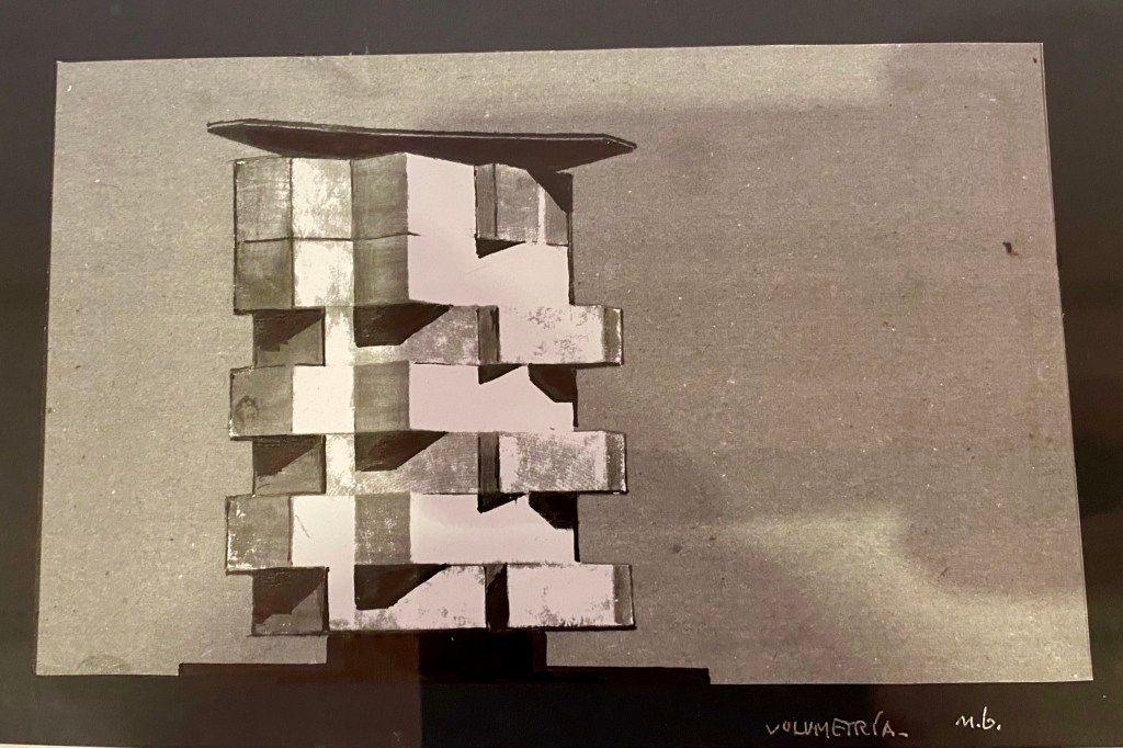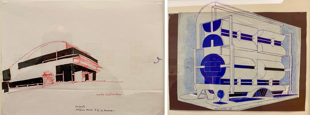 La exposición cuenta, además del mobiliario, con ideas arquitectónicas, a veces formuladas sólo por Basterretxea y a veces elaboradas en colaboración con su hermano Ander, quien sí tenía título de arquitecto. Cuando eran proyectos presentados a concursos oficiales lo hacia con su hermano -el Kursaal (San Sebastián), la biblioteca de la Universidad de Deusto…- y cuando no, se trataba de iniciativas que, más allá del ejercicio proyectual, buscaban estimular a alguien para que los asumiera -capilla para Lasarte (Álava), sede de Sabin-Etxea (Bilbao), museo para su propia obra (Bermeo)…- De todo este grupo resulta muy interesante su idea de museo de arte contemporáneo como una máquina. Dentro este conjunto lo más atractivo, para mi, es la propuesta de Javier Sáenz de Oíza para la casa (c. 1955) que en Irún iba a ser para Basterretxea, Oteiza y el propio Oíza, que no se terminó realizando en la manera prevista por él, sino en una variante reelaborada por Luis Vallet edificada en 1958.