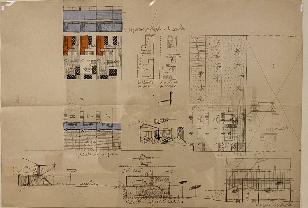 Javier Sáenz de Oiza. Proyecto para casa-talle de Oteiza, Basterretxea y Sáenz de Oiza, c. 1955. Grafito, tinta y papel encolado.