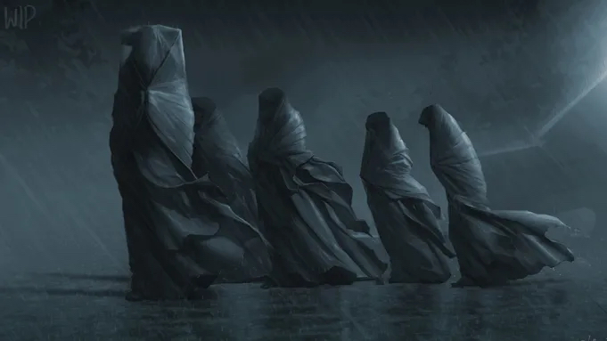 Palacio en Arrakis, claro símbolo de poder y opresión. Inspirado en las arquitecturas de los zigurats, la maya y la brutalista. Enormes paredes se alzan desafiantes con diseños oscuros y angulares que evocan una sensación de intimidación. La arquitectura es a la vez grandiosa y siniestra, reflejo de un gobierno despiadado y autoritario.