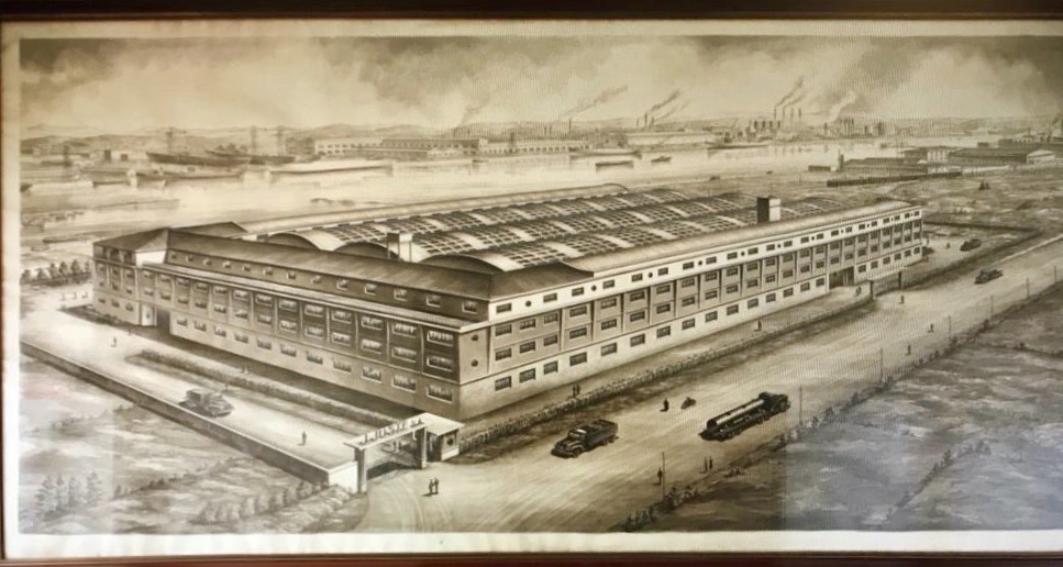 Juste, en Astrabudua (Erandio, Bizkaia). Dibujo no localizado. Construido en 1952, la estructura del edificio diseñado por Luis Lorenzo Blanc y Jesús Tribis era de hormigón, con dos naves principales de 80 metros de longitud, 16 de anchura y 11 de altura, a la que se les sumaba una tercera nave auxiliar de 18 metros también de largo. El edificio tenía unos 7.000 metros cuadrados. Fue demolido en 2015.