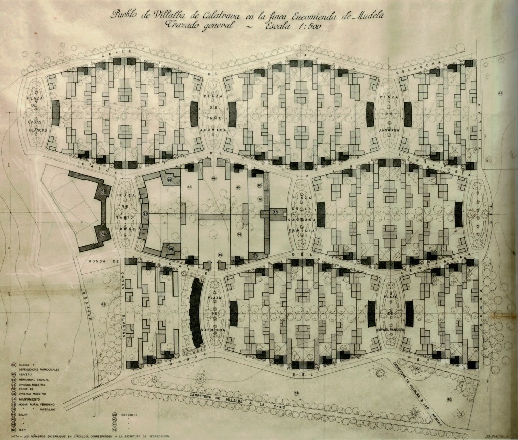 Plano de la urbanización de Villalba de Calatrava (Ciudad Real), de José Luis Fernández del Amo (1955).
