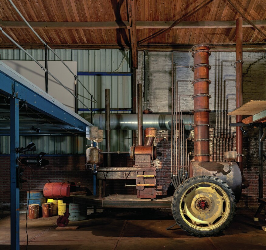 El pasado otoño AVL presentó en Brutus la instalación «Disco Inferno». Se trataba de una enorme sala de máquinas rugiente a la que AVL llamó «monstruo industrial», un penumbroso espacio lleno de tanques, bidones y toneles, máquinas gigantescas hechas a mano, muebles, obras de otros artistas, generadores, bombas y trituradoras propulsadas por motores diésel e híbridos, utopías y distopías, conectado todo ello entre sí por un laberinto de tubos, mangueras, y cables, sumido en el traqueteo de ruedas dentadas, estridencia de cintas en movimiento sinfin y golpes rítmicos de martillos envueltos por un fuerte olor a brea. Así que, a pesar del nombre, ‘Disco Inferno’ no era una discoteca ni uno de los nueve círculos del infierno en la Divina Comedia de Dante. Probablemente el título estaba basado en la canción del mismo nombre, Disco Inferno, que compusieron The Trammps en 1976 al inspirarles la película El coloso en llamas (The Towering Inferno, 1974), aquella en la que un rascacielos de 135 plantas arde en llamas mientras se celebra una gran fiesta en el último piso.