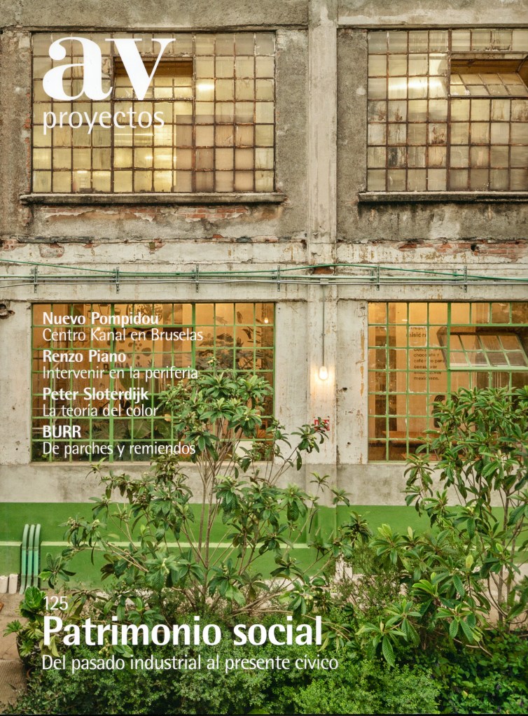 El número 125 de la revista av proyectos, de reciente publicación, es un monográfico dedicado a las rehabilitaciones con cambio de uso en antiguos edificios industriales, acometidas en diferentes partes del mundo. Me gusta el concepto que aplican al asunto, pues no se habla de «patrimonio industrial», como ha sido frecuente entre nosotros hasta ahora, sino de «patrimonio social» considerado desde un «presente cívico». Es decir, se trata de patrimonio por la vía de la cultura y es social por un civismo que hoy respeta los vestigios industriales por lo que representan de nuestro pasado y por lo que son como bienes susceptibles de reutilización en tiempos que exigen reducir la huella de carbono. Industrial fue el pasado de esos edificios, su origen, la razón por la que surgieron, pero su función fabril desapareció hace tiempo para entrar en un estado de afuncionalidad que la progresiva degradación física termina por convertirlos en escombros o en apariencia de escombros porque estos edificios, aunque devorados por la vegetación y con abundantes daños menores, nacieron para que sus estructuras aguantaran enormes presiones y sus espacios interiores se amoldasen con flexibilidad a cualquier demanda de los usuarios.