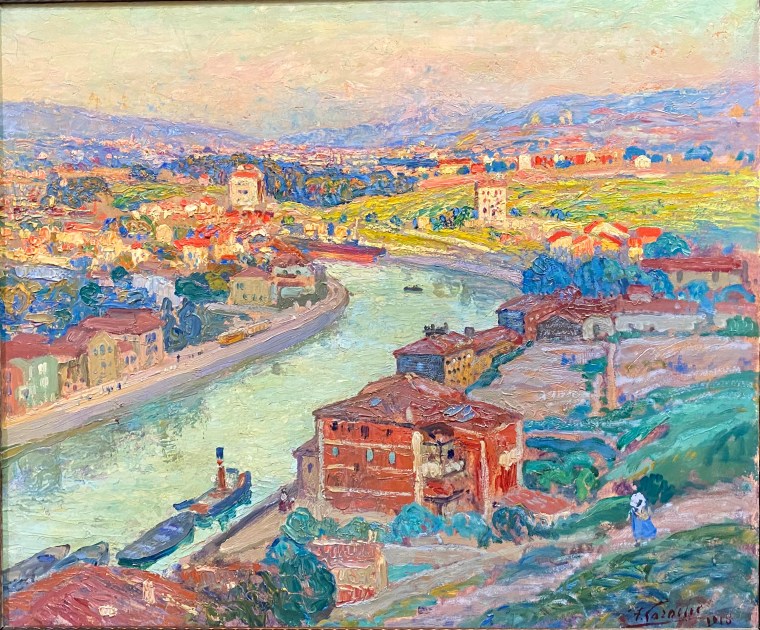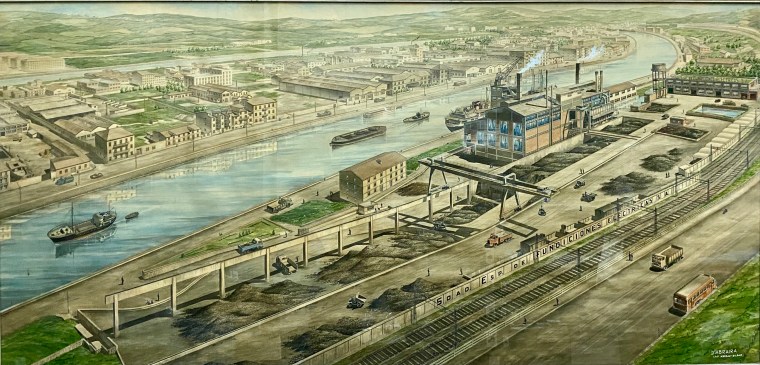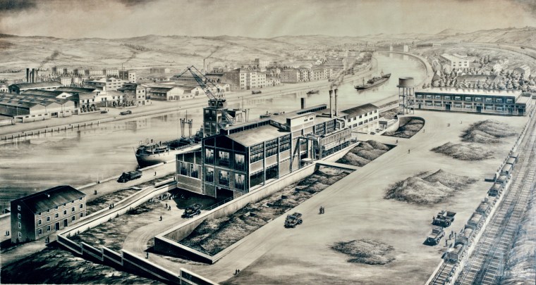 Fernando Laroche, Ria de Bilbao en Olabeaga, 1918, óleo /cartón, 45,5 x 56 cm. Antes de SEFESA.