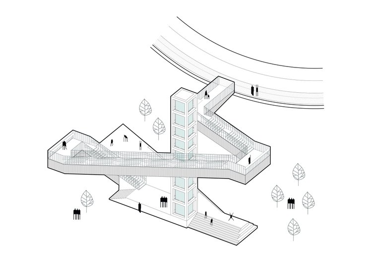 Larrea/Aguirre plantearon dos propuestas no muy diferentes, una en 1970 y otra en 1972, pues ambas se basaban en la repetición modular; una modulación estructural cuya geometría y sistema constructivo permitían una espacialidad interior abierta, flexible y no jerárquica, propia de la arquitectura moderna, dando lugar en el exterior a una abstracción geométrica. Un único módulo se multiplica y adhiere a sus iguales con un ritmo constante y homogéneo para generar una estructura extensiva e isótropa. Este tipo de solución resultaba muy funcional para los usos cambiantes del interior de un edificio «comercial», pero al paisaje urbano le quitaba monumentalidad, añadiendo monotonía si esa repetición no estaba acompañada/matizada con detalles de diseño.