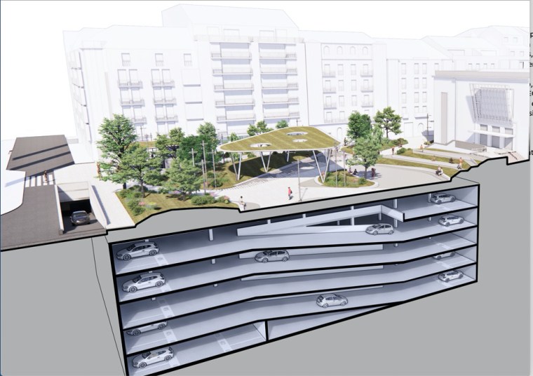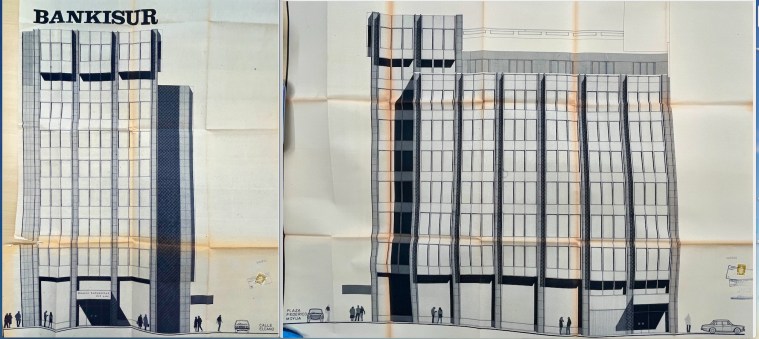 El proyecto de sustitución fue presentado al ayuntamiento por los arquitectos Julián Larrea y Germán Aguirre en marzo de 1971 como un encargo solicitado por la empresa Promociones y Construcciones Echesan S. A. «Consecuencia de nuevos proyectos en la misma zona«, los proyectistas se planteaban la «común preocupación de mantener en lo posible una dignidad arquitectónica en la Plaza«. El proyecto contemplaba tres plantas subterráneas, una planta baja y ocho plantas más, estando las dos más elevadas parcialmente retranqueadas en Alameda de Recalde. En superficie construida el nuevo edificio aumentaba en un 140 % la superficie del edificio anterior. Desde un primer momento el objetivo de Echesan era destinarlo a oficinas de alquiler.