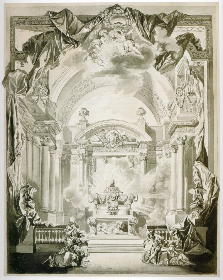 Perspectiva del conjunto monumental de Semana Santa para el Consistorio bilbaíno, 1780-81. Lápiz, pluma y aguada a tinta china a pincel sobre papel verjurado, 520×405 mm.