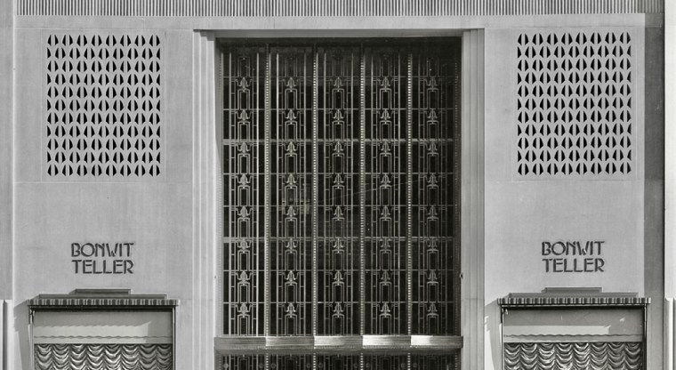 Gran celosía de bronce, diseñada por el arquitecto Ely Jacques Kahn, sobre la puerta de acceso principal. Las ventanas de sus escaparates (abajo a ambos lados) sirvieron para mostrar las obras de importantes artistas. En los dos escaparates laterales Salvador Dalí creó dos habitaciones en 1939, en una representaba la noche y en la otra, el día. En 1955 fueron Jasper Johns y Robert Rauschenberg quienes presentaron unos trabajos en colaboración. James Rosenquist lo hizo en 1959. Andy Warhol mostró en 1961 en ellos diseños de zapatos y pinturas basadas en cómics y anuncios, que funcionaron como telón de fondo para maniquíes con vestidos de alta costura.