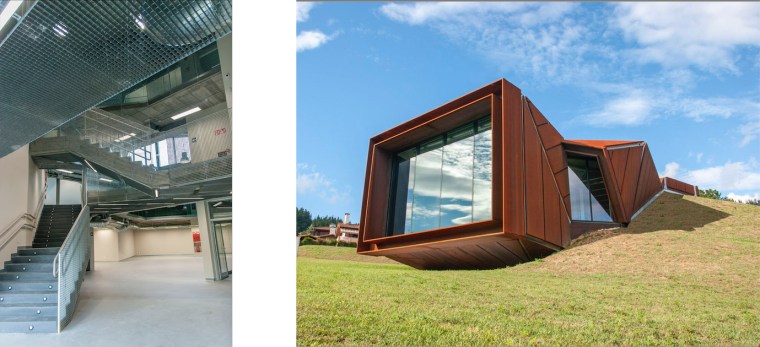 No obstante, ese plegamiento de la cubierta no es ninguna novedad en Euskadi. El estudio de arquitectura Coll-Barreu ya realizó antes un par de actuaciones similares y en dimensiones mucho mayores, como son la sede del Departamento de Sanidad del Gobierno Vasco (Bilbao, 2008) y el edificio E8 en el ParqueTecnológico de Álava (Vitoria, 2012-13). La propia Urbelan, en colaboración con estudio.k, llevó a cabo algo parecido en la ampliación de la Facultad de Bellas Artes de la UPV (Leioa, 2008-13).